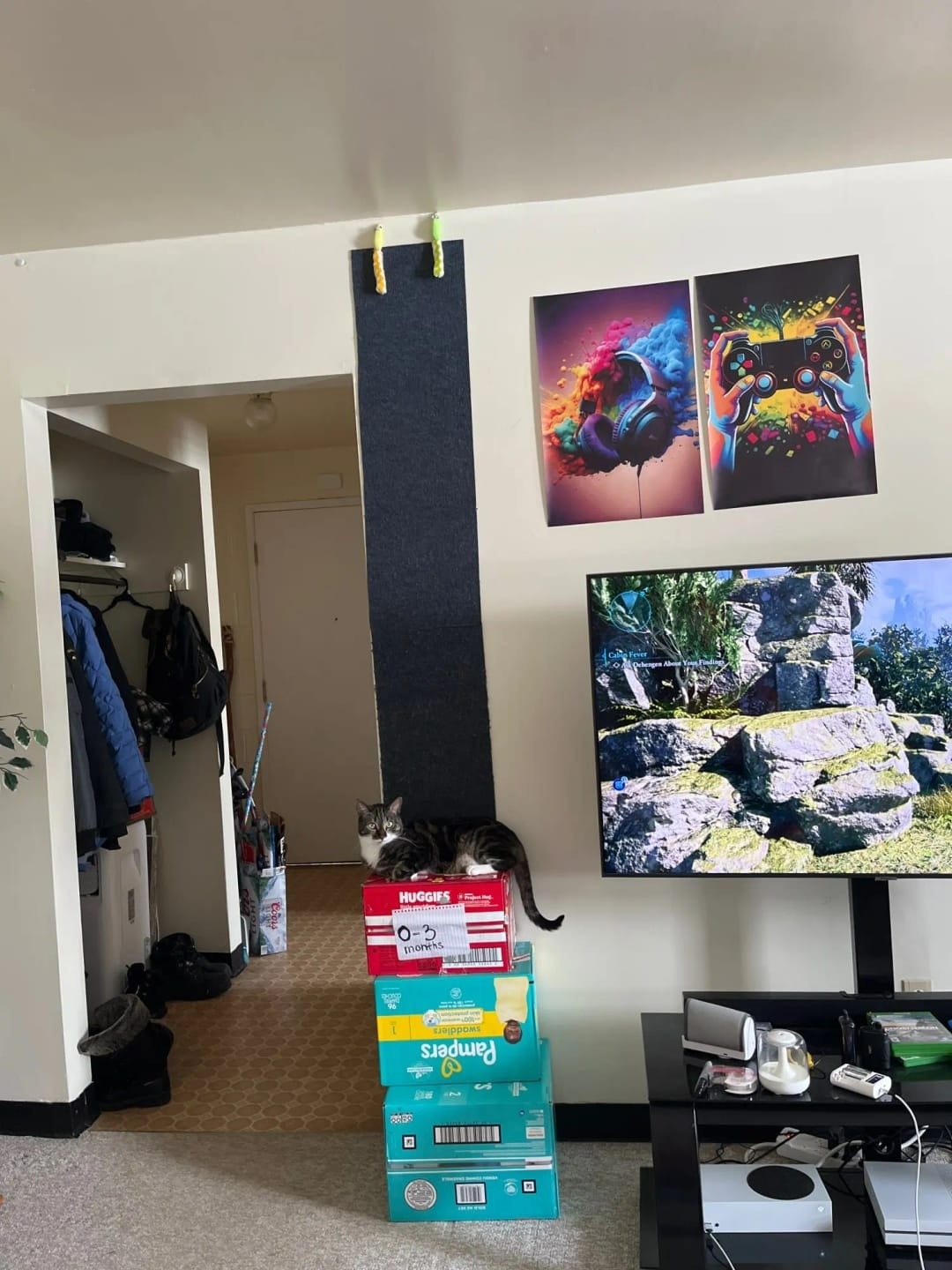 I pasted it because the cat tightened his claw at the corner. It would be nice to stick it on a flat surface, but it's easy to peel off when folded because it's a corner. It peels off easily. It seems that it would be better to cut and paste this side and this side in two pieces.